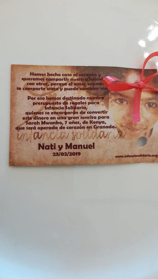 Que una pareja de enamorados, en uno de los días más felices de su vida, se acuerden de niñ@s enferm@s y encima decidan ayudar a una de ellas… dice mucho de ellos.
