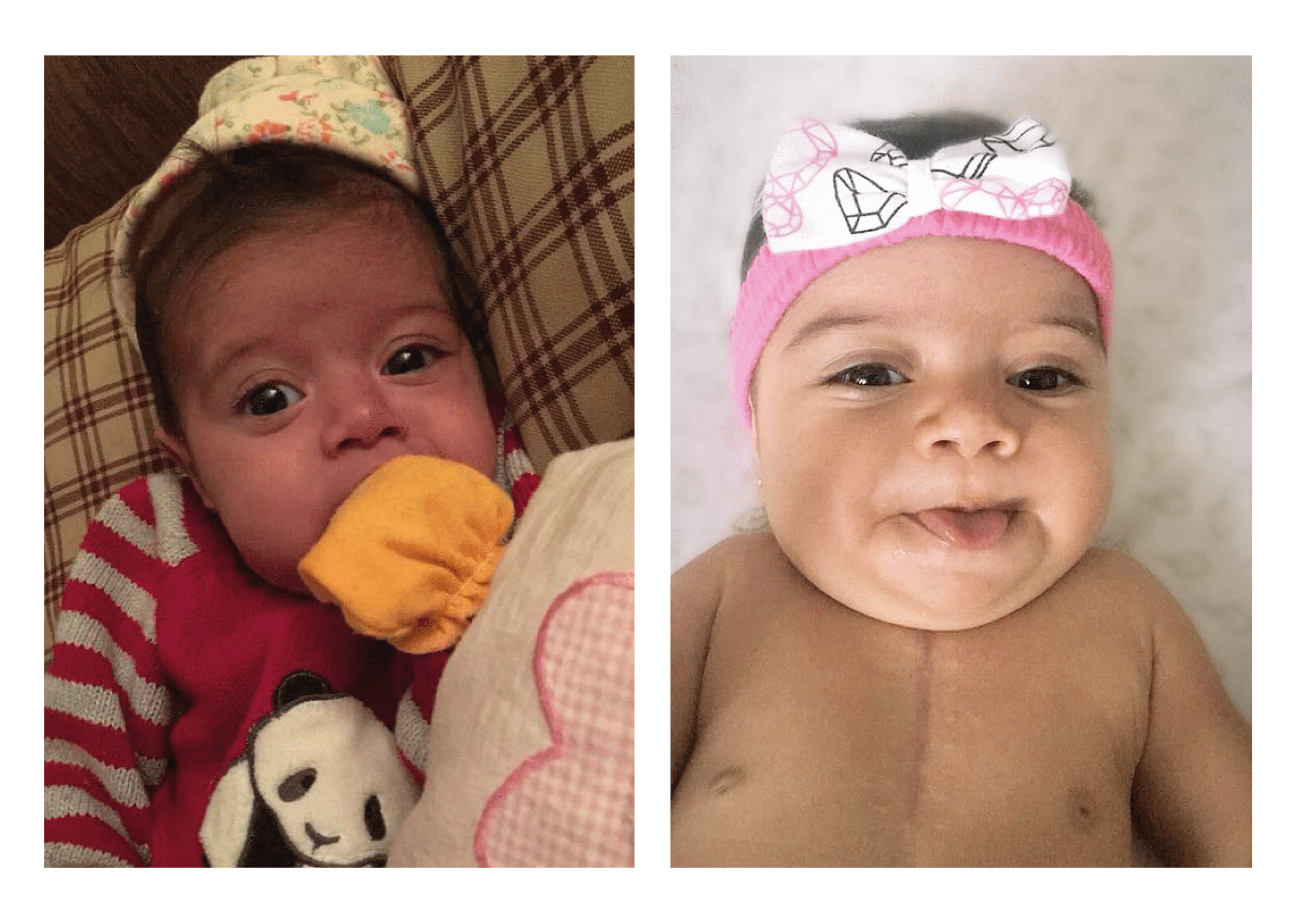 Es nuestra pequeña Leah, en abril, el día que llegó a Córdoba para operarse de su cardiopatía, y a día de hoy. Impresionante, ¿verdad? Es una auténtica preciosidad.