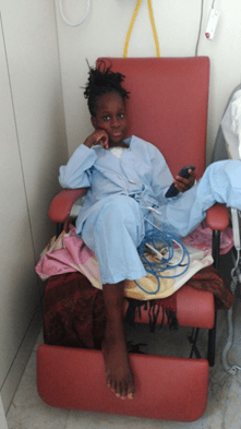 Ndeye, en la primera foto de 2016, adopta una posición de espera despreocupada, con el móvil, como si no fuera con ella, mientras llega la hora de su importante operación de corazón en el Hospital Sant Joan de Déu de Barcelona. ¡Así son también los adolescentes a los que ayudamos!