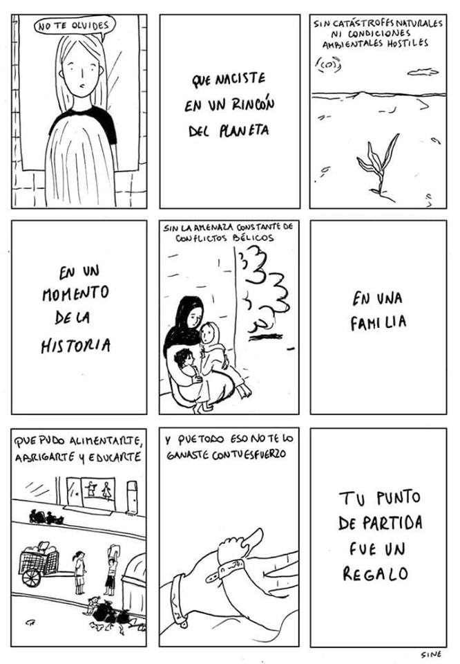 Sin embargo, tenemos todas esas comodidades, apenas sin darnos cuenta, nos acostumbramos a nuestra realidad, olvidándonos de que existen muchas otras… La conciencia de esto, es lo que puede abrirnos la mente, tener presente el regalo que nos han hecho al nacer, y darnos cuenta de que en el mundo hay gente que ha carecido de esa posibilidad… Y en nuestra mente se repite una frase “Al igual que yo he tenido estos derechos y esta fortuna, ¿no me gustaría que otras personas pudieran sentir esa paz y tranquilidad?”. Sabemos que es un trabajo colectivo y difícil, que el deseo de poder mejorar la vida de gente que no ha tenido facilidades nos puede parecer casi utópico. Pero, podemos, podemos poner nuestro granito de arena y mejorar un poco cada día, con cada acción, con trabajo y dedicación, con la ayuda de todos los voluntarios y todas las ONG y organizaciones que ponen su piel y se esfuerzan en ayudar a niños, a personas como tú y como yo.